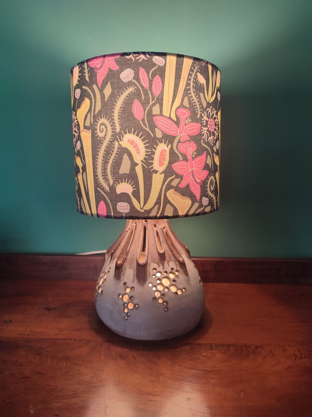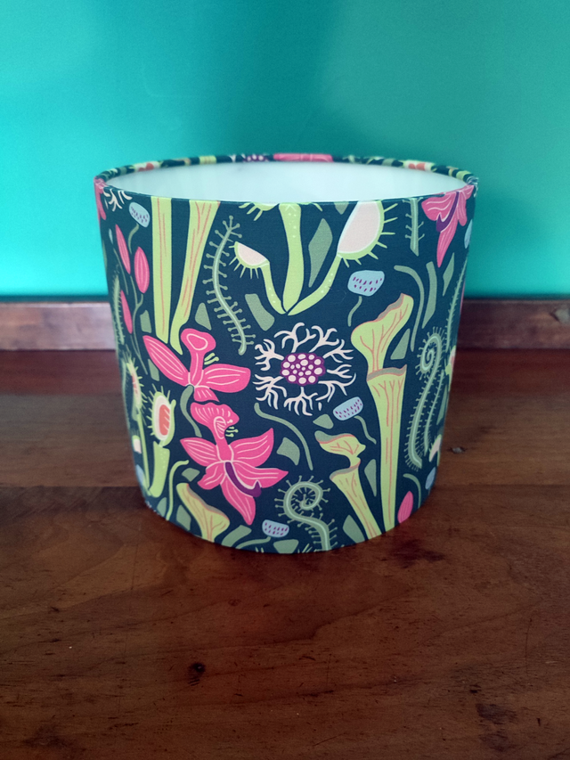 Handmade lampshade featuring bog plants. Lovely Venus Fly Traps, Picture Plants and Sundews for all you carnivorous plant lovers. This is available as a 30cm or 40cm diameter shade.